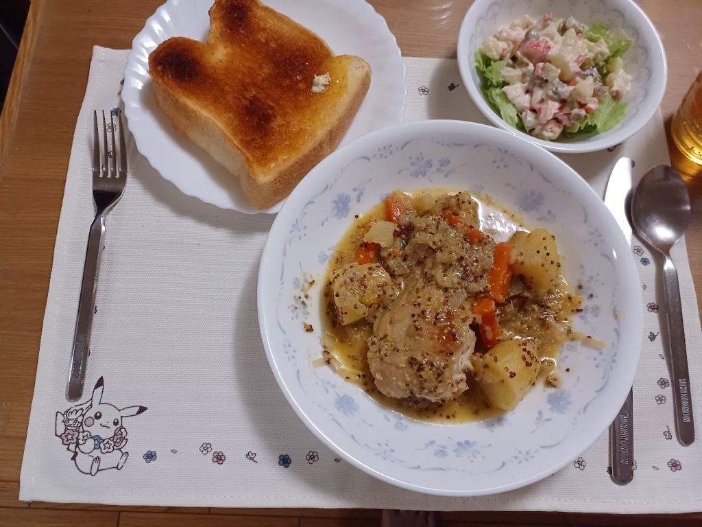 まずチキンヤッサってなんやねん! という感じですが、鶏肉、たまねぎ、にんじん、じゃがいもを大量のマスタードとともに煮込む西アフリカの料理で、作った感じではビーフシチューやカレーのように肉じゃがの遠い親戚な気がしました (少なくともそれらの料理のように手軽に洗いものが少なく作れるので作り手には優しい料理だと思います)