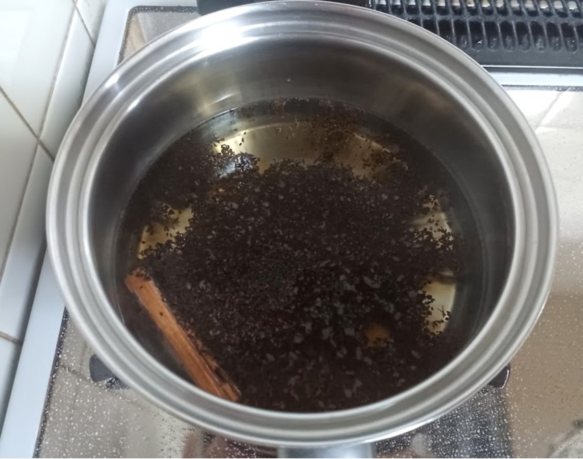 水が少量でゆっくり煮出すことが難しいので濃く抽出するためにシナモンスティックは削るかパウダーのものを使っても良かったかも知れません。